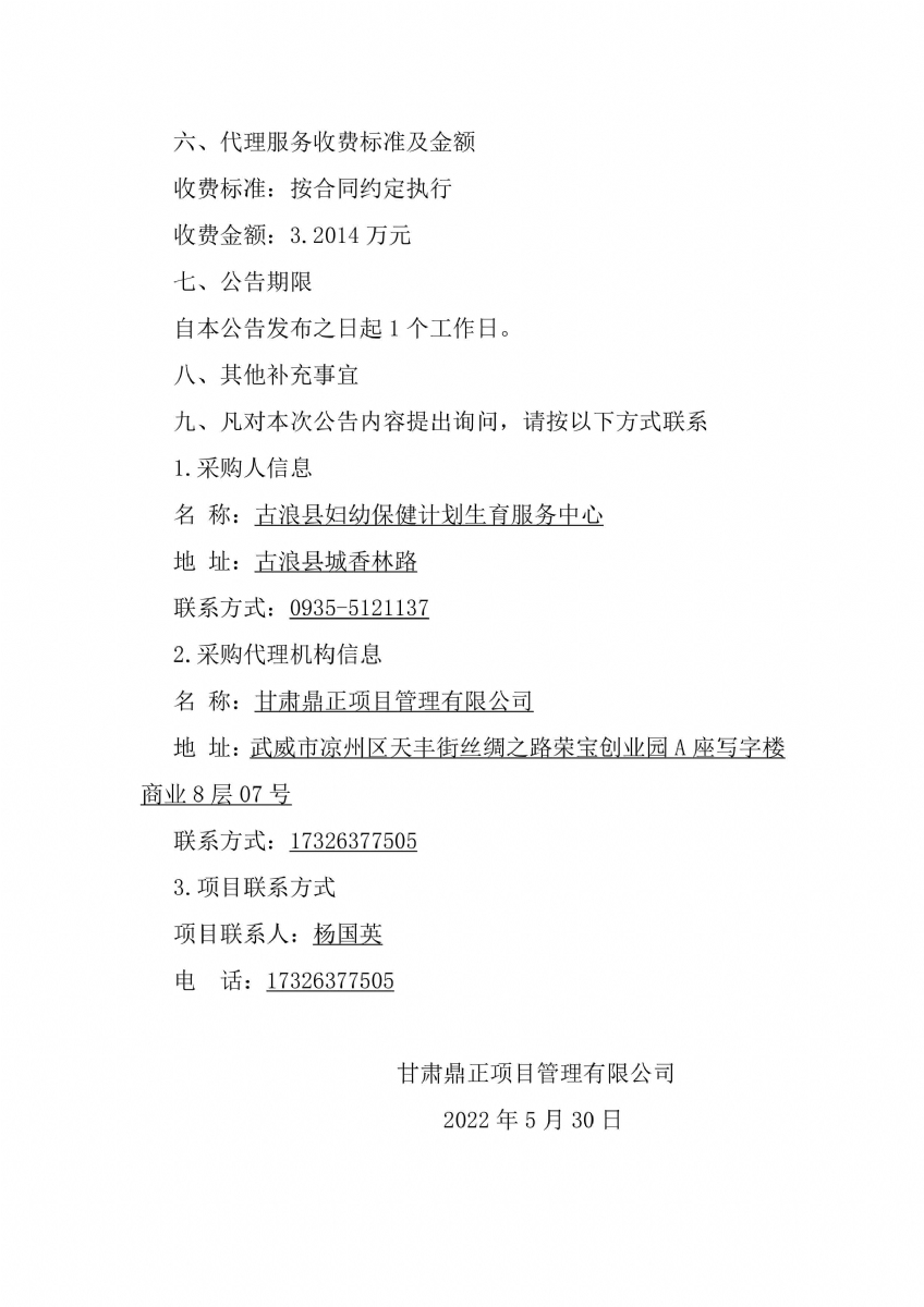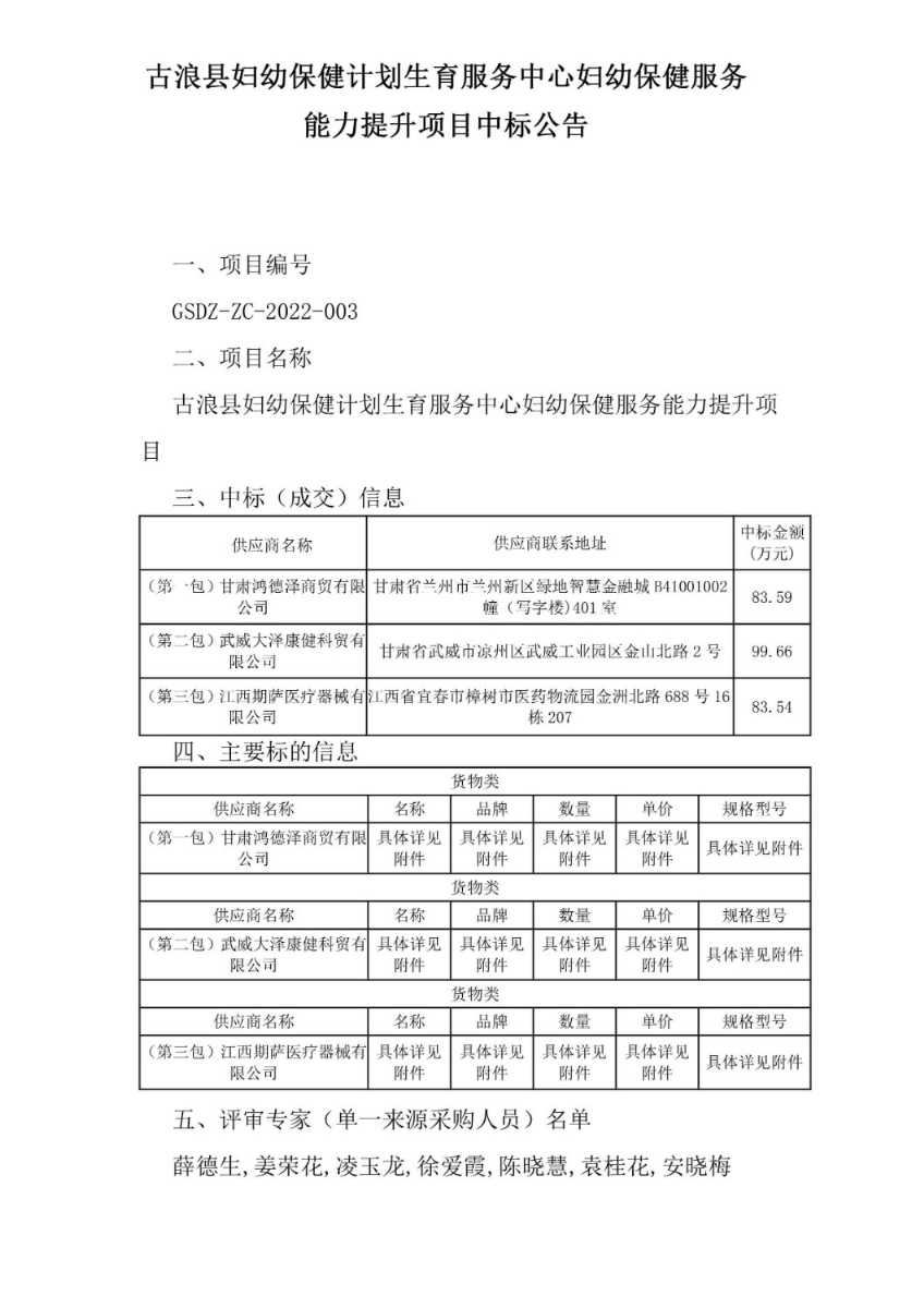 古浪縣婦幼保健計(jì)劃生育服務(wù)中心婦幼保健服務(wù)能力提升項(xiàng)目中標(biāo)公告